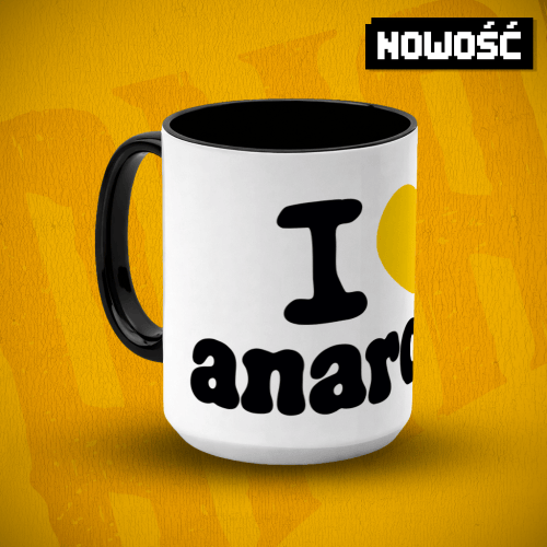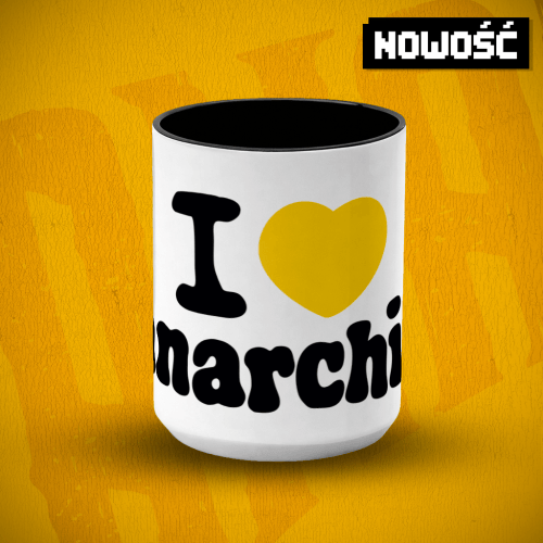 Duży kubek ceramiczny z nadrukiem I <3 Anarchia. Prosty, funkcjonalny model przeznaczony do codziennego użytku.